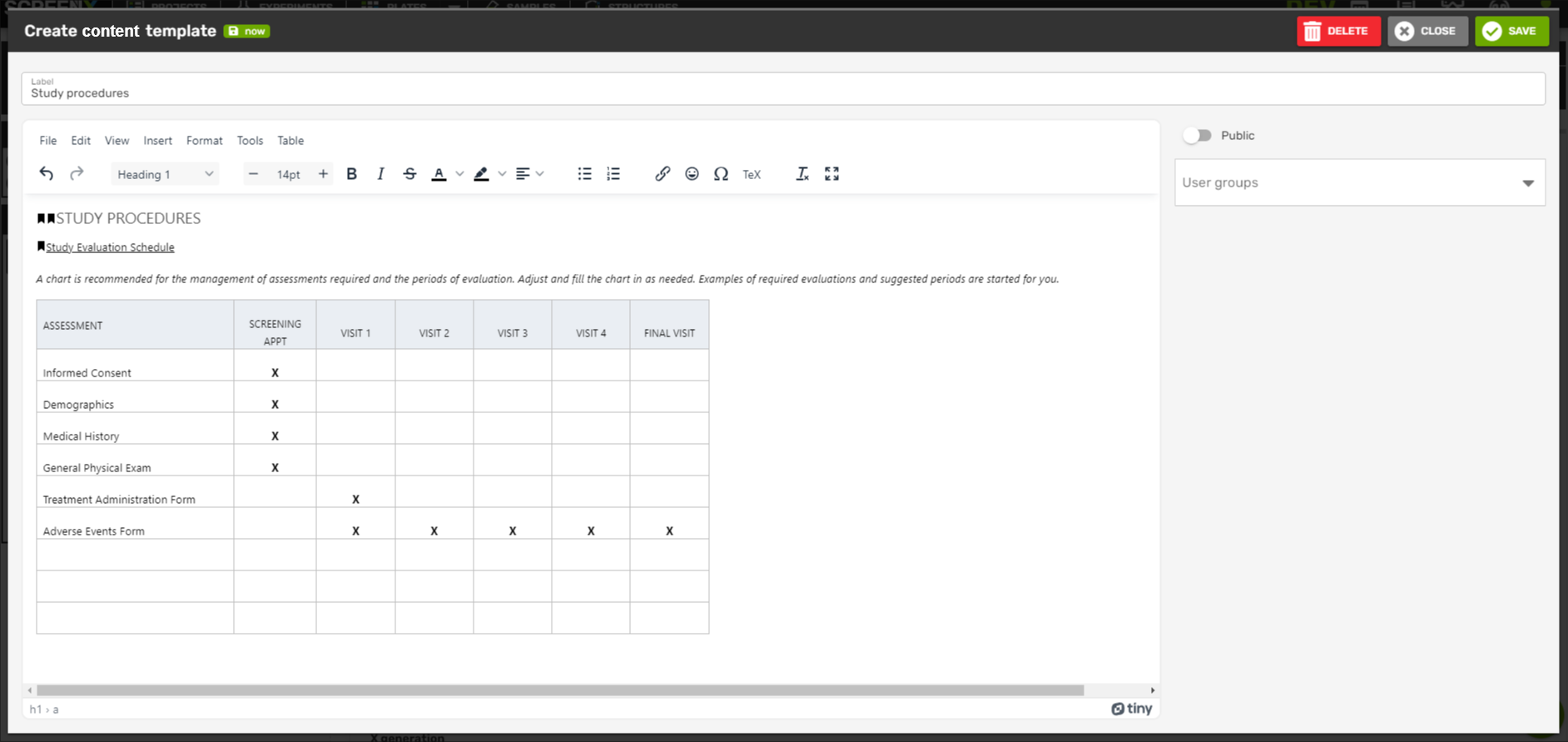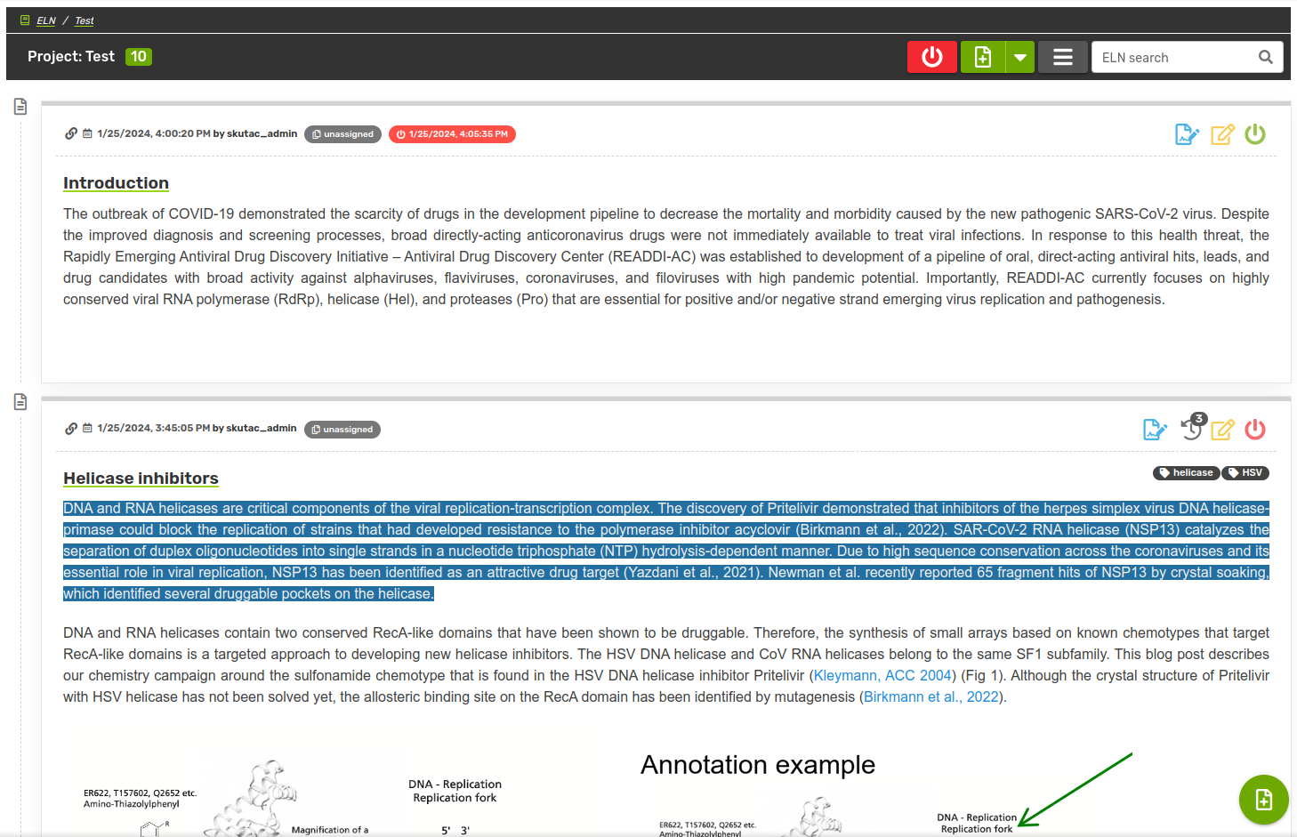 Record templates allow you to predefine the structure and default content of your records. They are especially useful for maintaining consistency across recurring types of entries, such as daily logs, experiment setups, or measurement reports. A record template can include predefined text, headings, tables, and other layout elements.