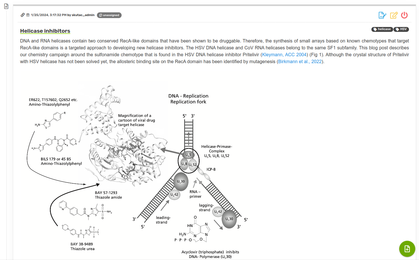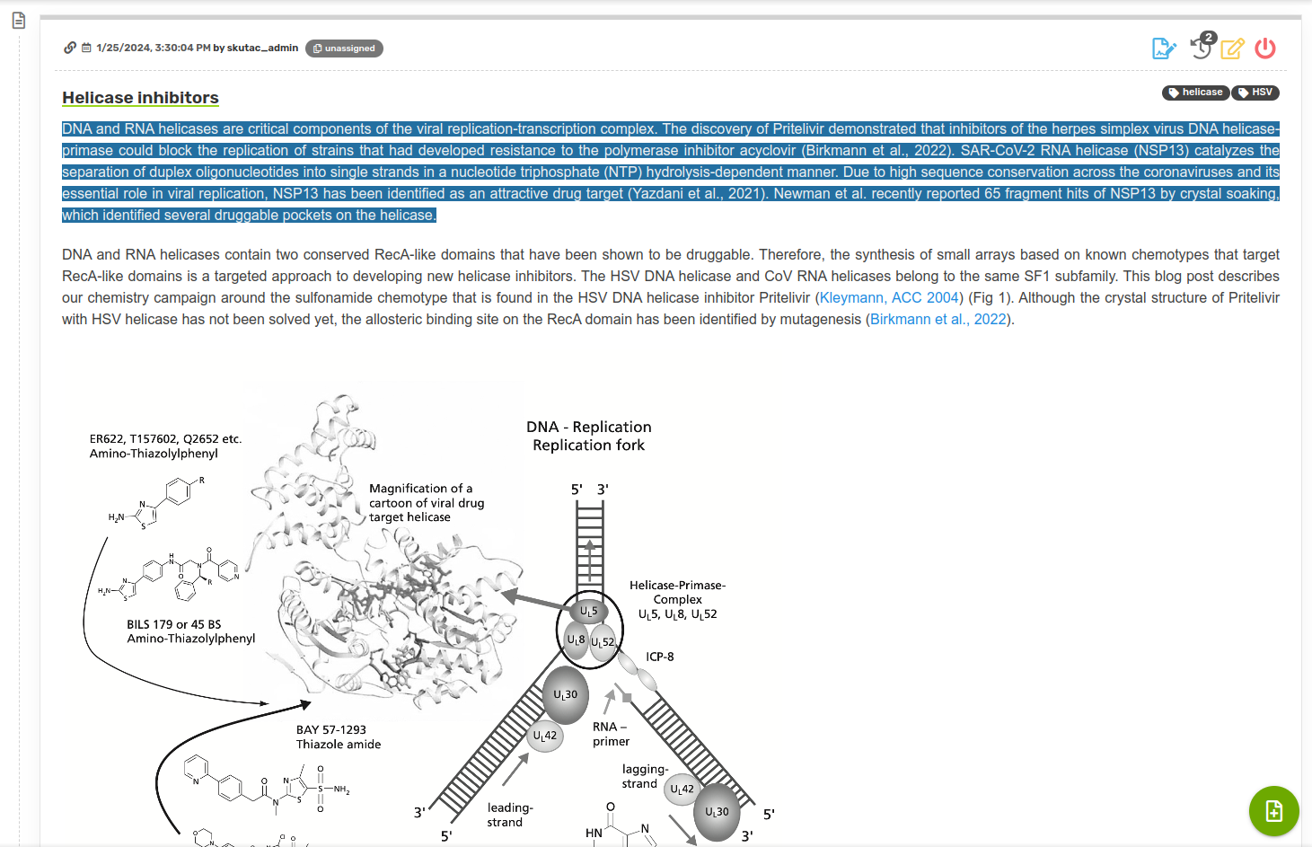 Records already saved in the notebook can be edited by clicking the Edit record button in the top-right corner of each record, or by double-clicking the body of the record (the record opens at the approximate position of the cursor). The original record is not changed by the edit and is saved as an older version of the record.