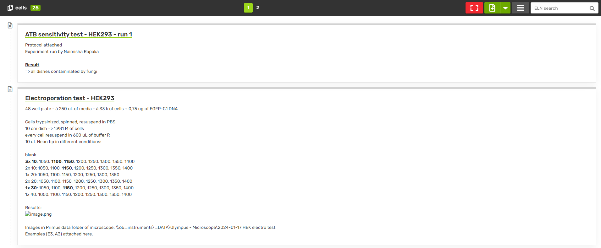 Notebook records consist of name (label), text body and/or file attachments. On top of that, each record has a timestamp showing when it was created, and information about which user created it. When a record is created, it can never be deleted - only new versions of the record can be created, or it can be hidden. All versions of a record are saved, including timestamps and user information. Records can be sorted into collections and freely moved between them.